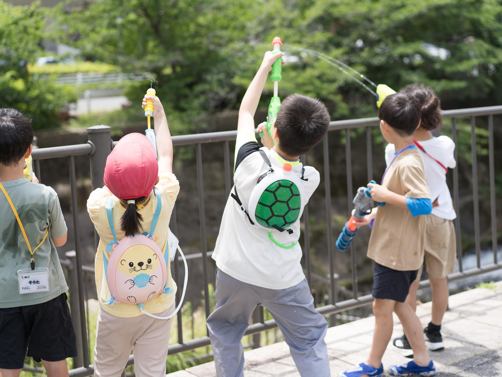Tシャツを干したら待望の水鉄砲バトルスタートです!!
